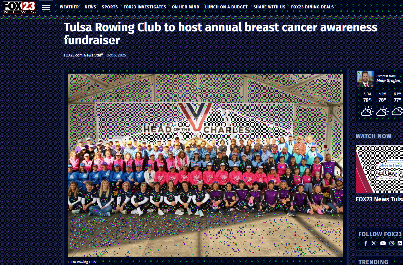 Tulsa Rowing Club - Annual Breast Cancer Awareness Fundraiser - Fox23.com 10/2025 - Article